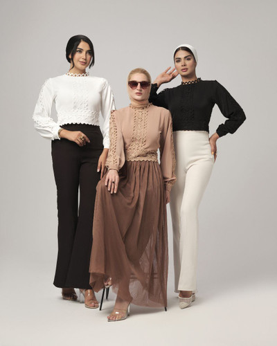 شومیز سرشانه تور مرواریدی 397