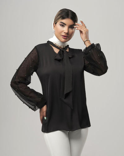 شومیز آستین تور مرواریدی 398