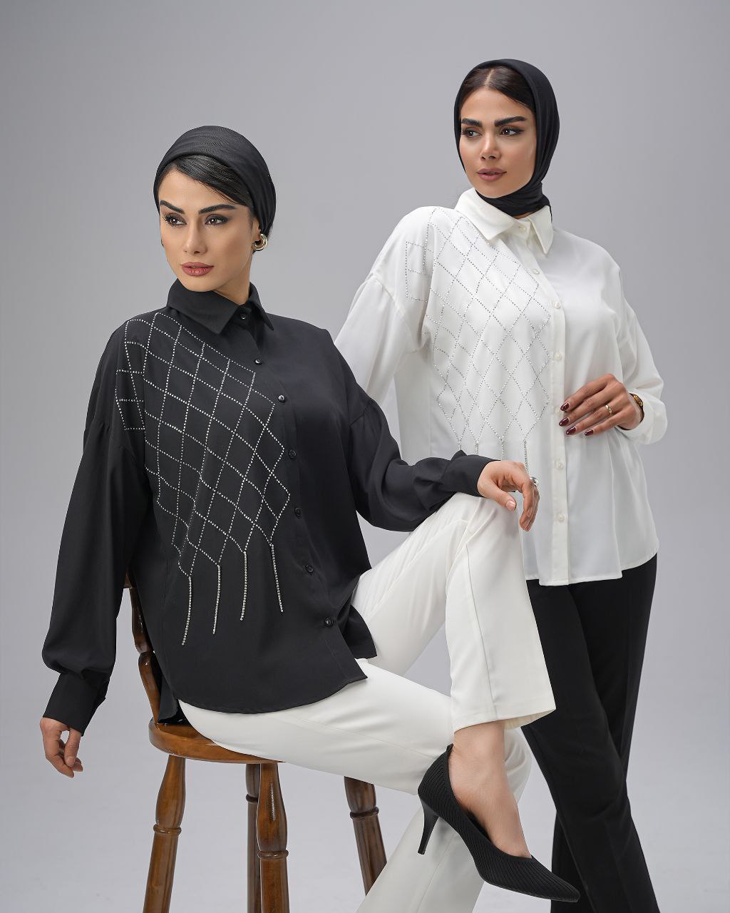شومیز نگین دار طرح هندسی 346