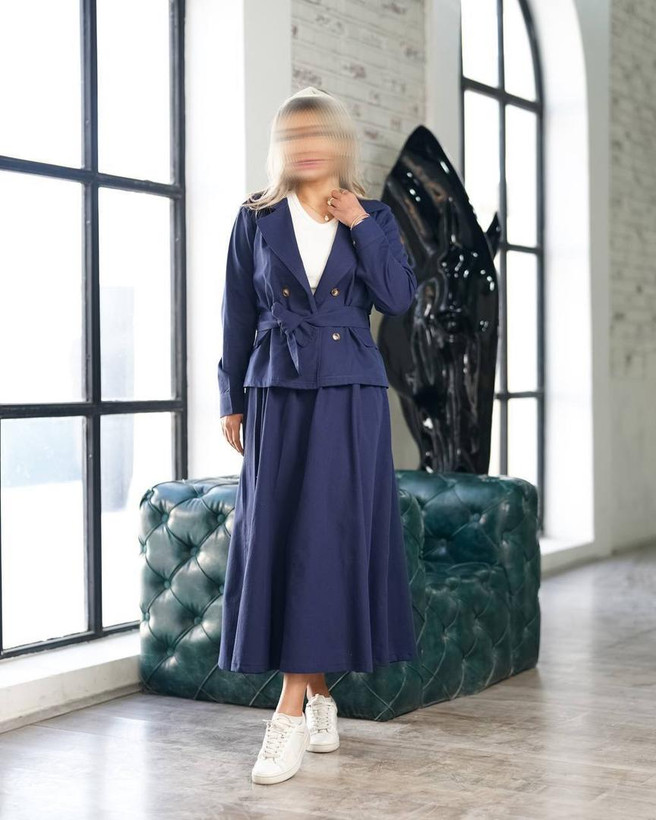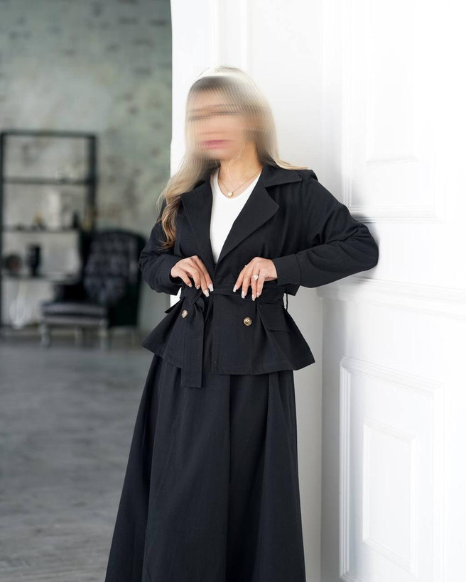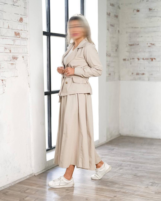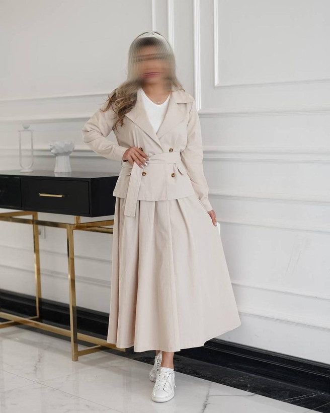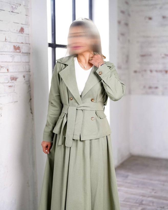 کت پشت شنل و دامن لینن